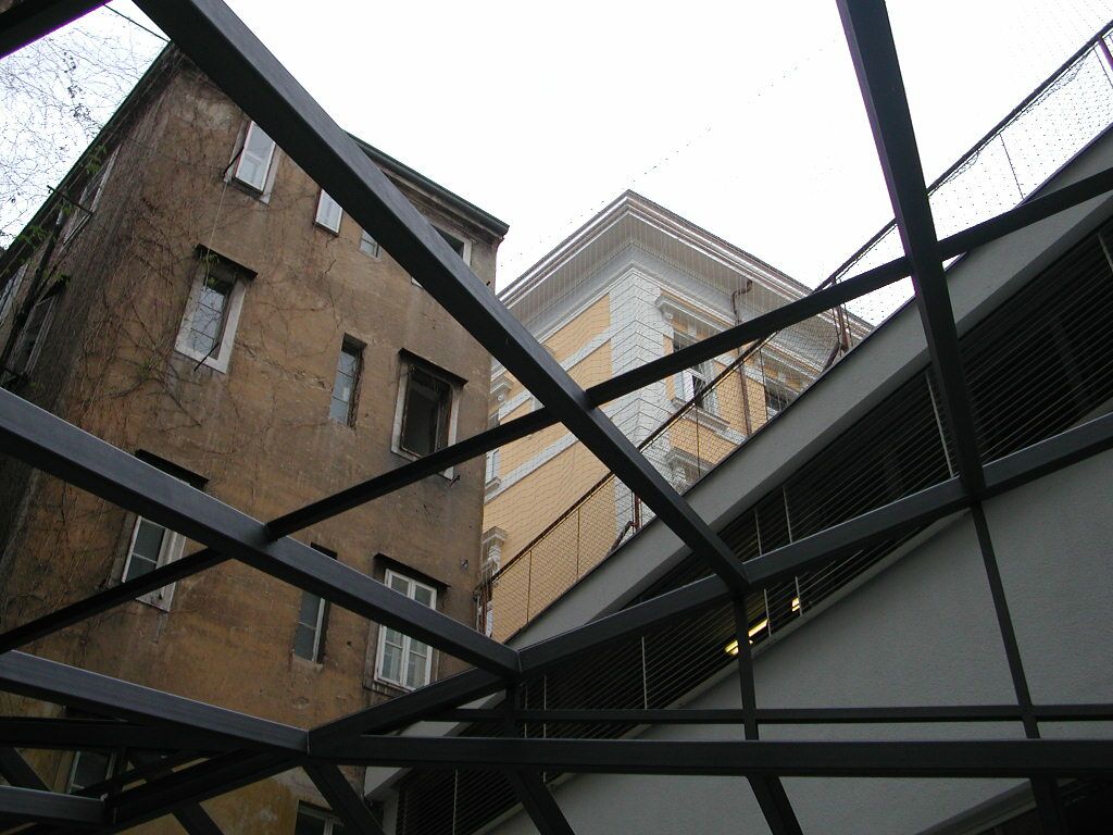 U sklopu Grand hotela "Bonavia" u Rijeci pristupilo se proširenju postojećeg hotelskog restorana natkrivanjem otvorenog atrija gradskog bloka koji je omeđen zgradama hotelskog kompleksa i školskim dvorištem obližnje gimnazije. Tijekom dugog vremenskog postojanja u kontinuitetu od XIX. stoljeća do danas unutrašnjost bloka je stihijski dograđivana, tako da je otvoreni blokovski prostor postao znatno smanjen i prostorno degradiran do manjeg, nepravilnog atrija trapeznog tlocrta i dijela koji je natkriven jednom od hotelskih zgrada. Projektom uređenja unutrašnjost bloka nadopunjuje se novim sadržajem vrtnog restauranta uz interpolaciju providnog, staklenog krova specifičnog oblika. Krovne plohe predstavljaju dinamičnu prostorno-likovnu igru i sastoje se od dva nepravilna kosa trokuta s dijagonalnim presjecištem. Koncepcijom se nastoji zadržati prostorni karakter zatečene nepravilne unutrašnjosti bloka, te omogućiti posjetiteljima novog restorana zanimljiv pogled prema pročeljima građevina koje oblikuju nutrinu gradskog bloka.